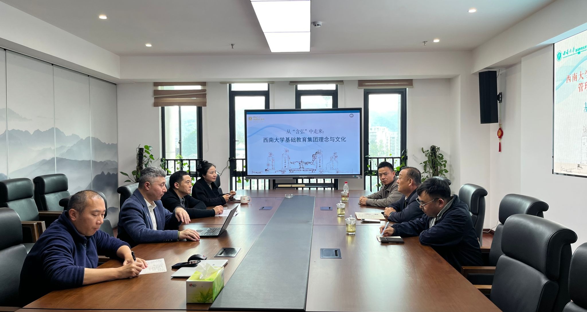 为深化校地教育合作,推动基础教育高质量发展,12月19日,西南大学与绵阳市安州区基础教育合作办学交流座谈会在西南大学基础教育投资管理有限公司1108会议室举行。会议由总经理田再悦主持。会上,田再悦首先发表致辞,对绵阳市安州区代表团的到来表示热烈欢迎,并介绍了公司的发展历程、学校布局及在基础教育领域的资源优势与实践成果,表达了深化校地合作、共促教育提质的诚挚意愿。 绵阳市安州区区委常委、宣传部部长、区委教...