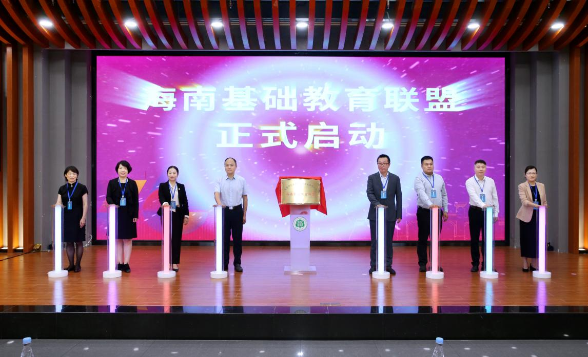 杨毅董事长参加了海南基础教育联盟启动仪式,与北京师范大学、华东师范大学等 8 所理事单位代表共同按下了联盟揭牌的启动按钮。西南大学临高实验中学党支部书记、校长李英华受邀作《西南大学赋能海南教育创新——西南大学临高实验中学的跃升实践》主旨发言。